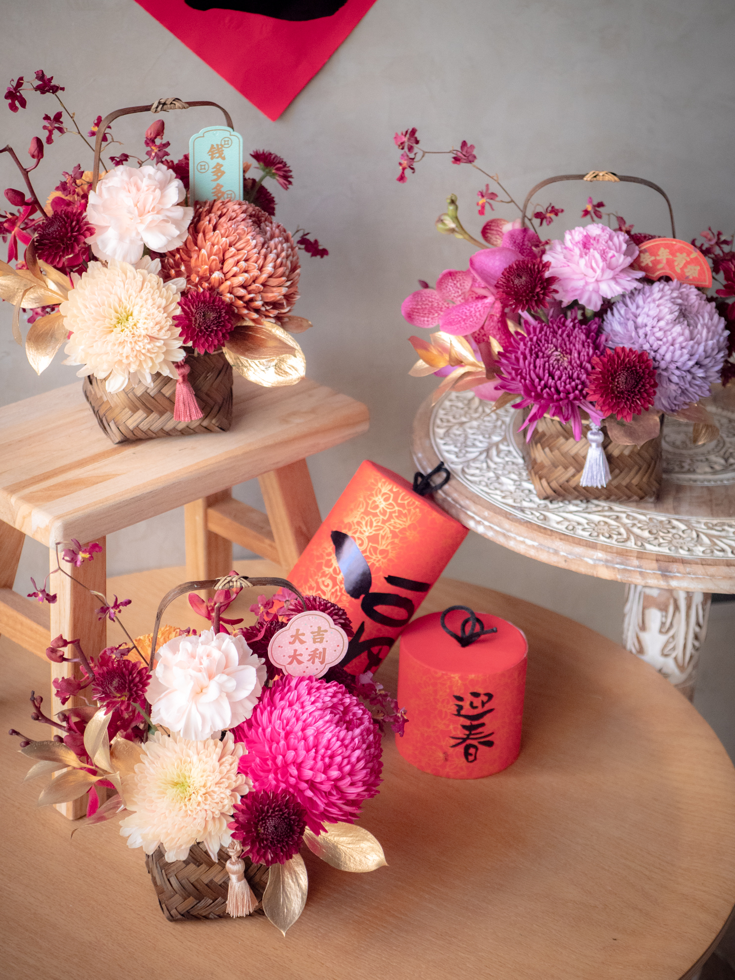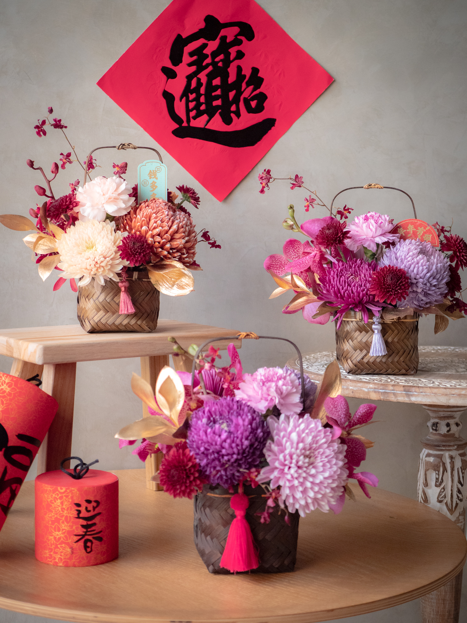 🧧 迎春系列材料特別挑選了相對長壽的花材,大約可維持7-10天。實際觀賞期會依照您澆水狀況,擺放的環境,天氣狀況,室內溫度等因素影響觀賞期。