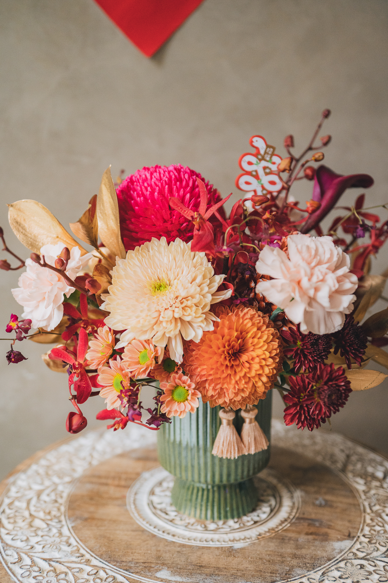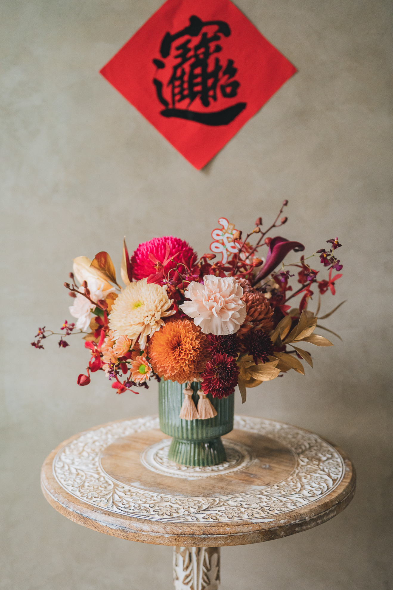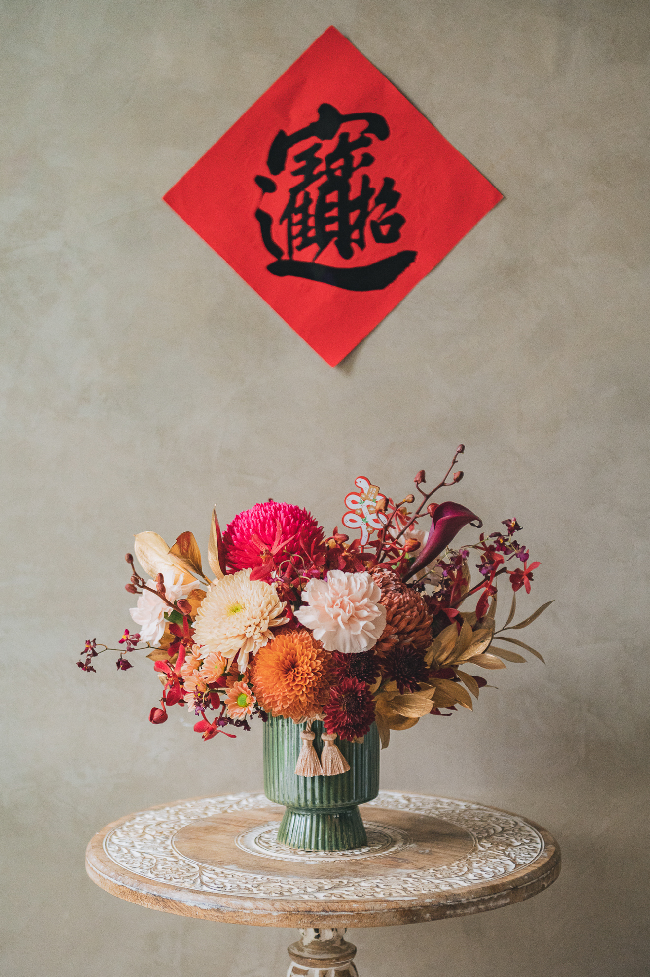 🧧 迎春系列材料特別挑選了相對長壽的花材,大約可維持7-10天。實際觀賞期會依照您澆水狀況,擺放的環境,天氣狀況,室內溫度等因素影響觀賞期。