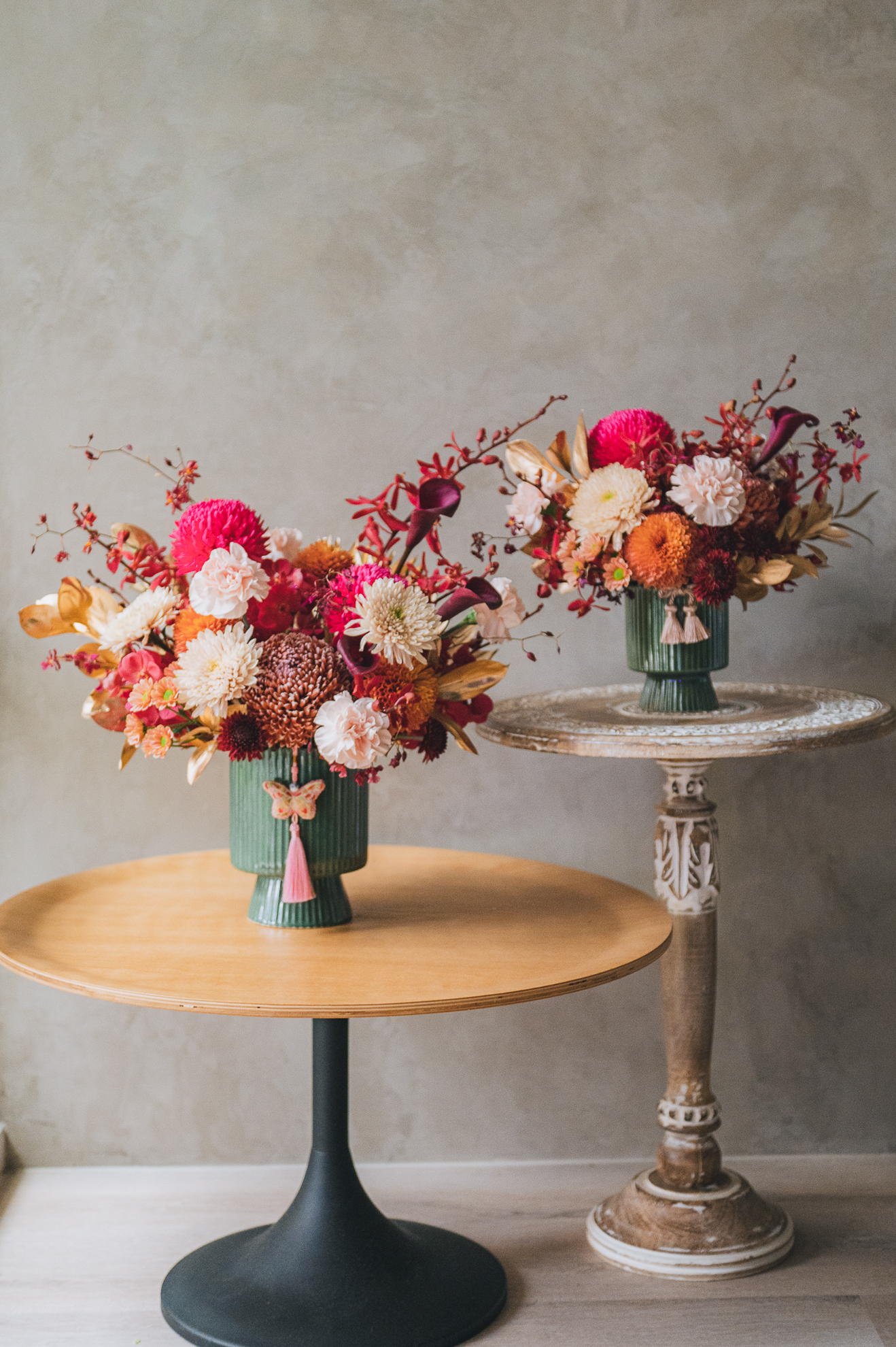牡丹菊,進口大菊花,萬代蘭,文心蘭,進口大康乃馨,海芋,進口小菊花,金色葉材,陶瓷盆器,其它異材料裝飾
