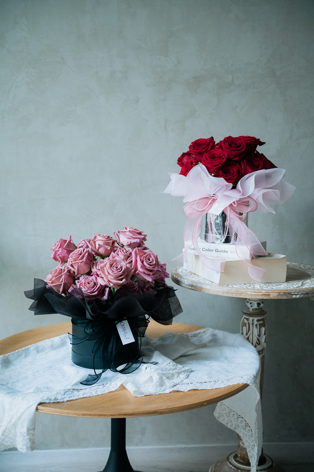 - 作品為鮮花製作,型態都會有些許差異,不會與圖片一摸一樣。如遇花材/飾品/包裝短缺,會以相同風格花材/飾品/包裝替代。請相信我們花藝設計師幫您搭配。